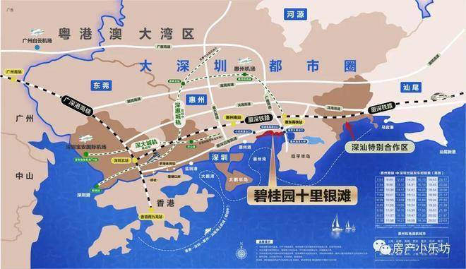 项目一路直通广惠高速亚婆角出口、惠深沿海高速小径湾出口;毗邻惠州南、惠东2大高铁站;距香港莲塘口岸约60公里;环抱惠州机场、深圳机场、广州机场!