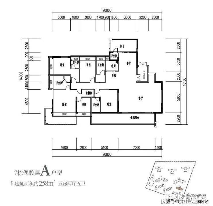 建面约258㎡ 5房2厅5卫