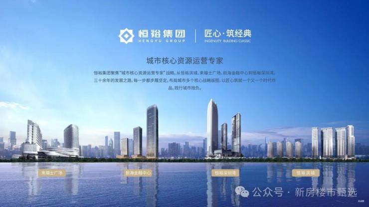 地标塑造者:城市顶级地标塑造专家,后海天际线-恒裕滨城、前海首排-前海金融中心、深圳湾C位-恒裕深圳湾;