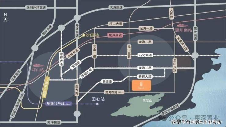 •4大轨道:地铁14号线、16号线(在建)、厦深高铁、深大城际(在建)