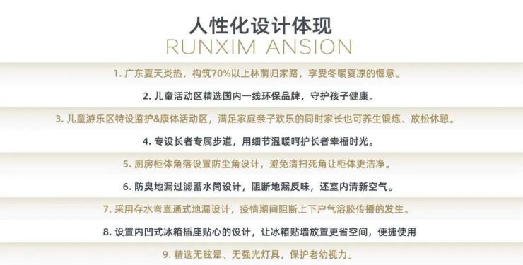 深圳润府品质延续:项目秉承华润置地“润系”品质,以豪宅润府二三期为原型,规划华润特有润享家泳池、全龄活动区、户外花园式会客厅、尊享入口门楼、花园式入户六大模块进行功能配置,项目园林面积近7万㎡,从小区大门到单元入户门设置70%以上林荫归家路,启新大亚湾 “润系”迭新重磅之作。