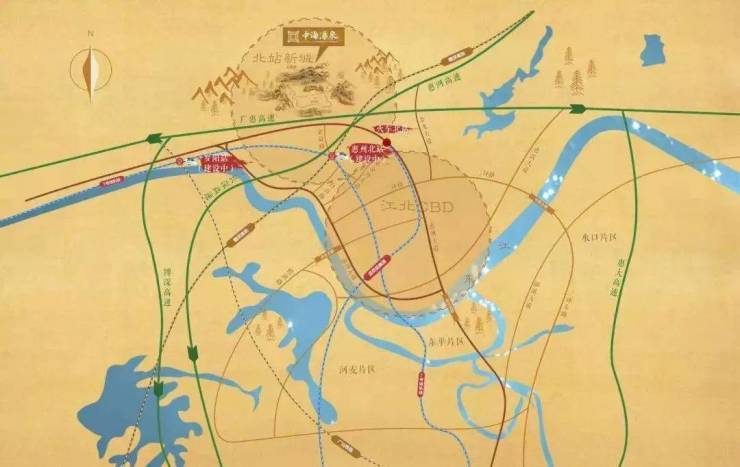 项目区域与交通:一风水福地,四通八达,离尘不离城— 城际交通、主干道交通、高铁城轨交通三大交通系统枢纽环绕,出行无忧。