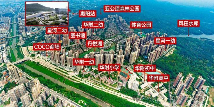 斥资 6 亿引进华南师范大学附属惠阳学校,覆盖幼儿园至高中全龄段,2024 年小升初蝉联惠阳第一,中考平均分连续 3 年领跑惠湾,100% 编制师资 + 100 门特色课,学位申请规则清晰,教育确定性拉满。