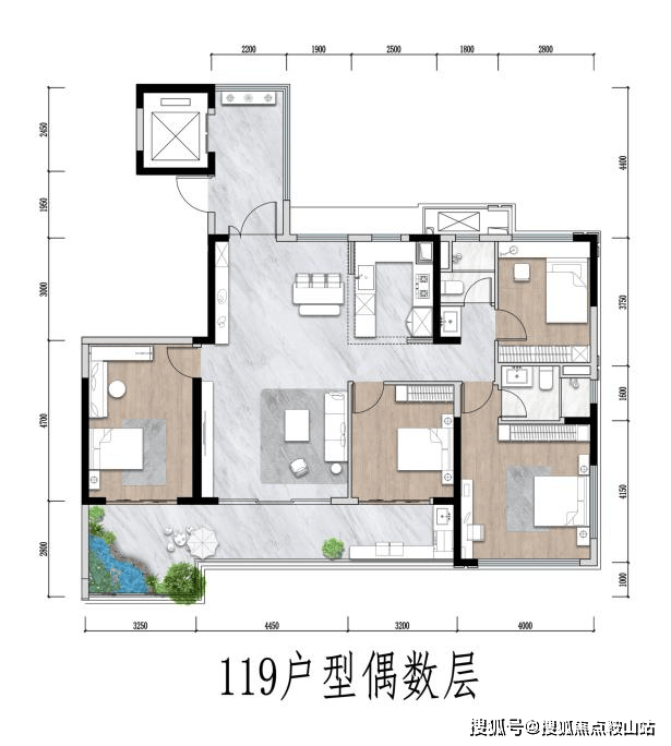 更值得一提的是,在偶数层,长辈套房直连南向约6米挑空庭院: