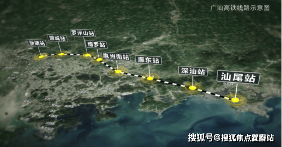 广汕高铁西起广州新塘站,途经广州、惠州、深汕特别合作区、汕尾4个市区。线路全长202公里,设计时速350公里,共设新塘、增城、罗浮山、博罗、惠州南、惠东、深汕、汕尾8个车站。