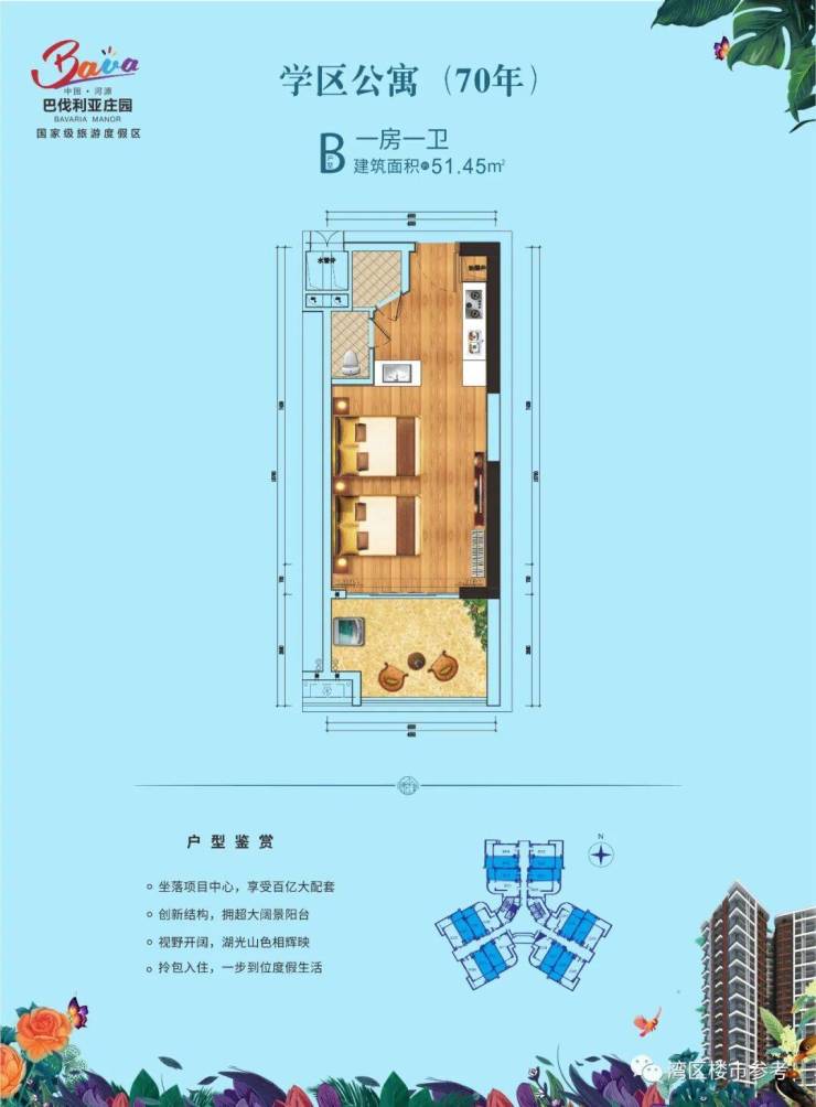 学区公寓坐落于优美的木球体育旅居小镇,观山揽湖,四季风景如画;