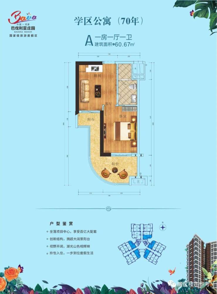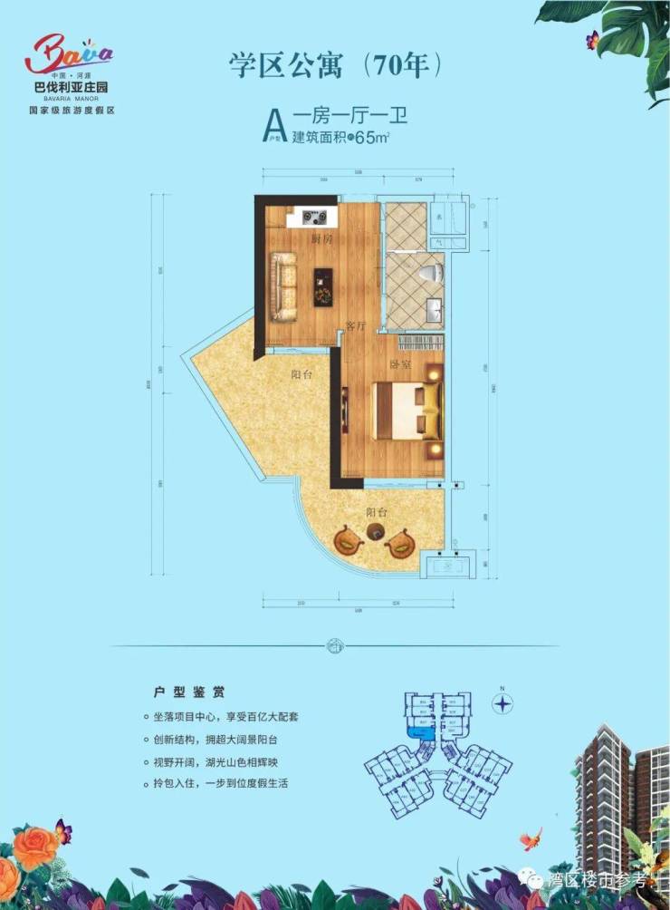 建面约50-65㎡创新户型,阔景大阳台,远山近景悠享;