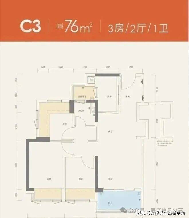 【建筑面积76㎡3房1卫】