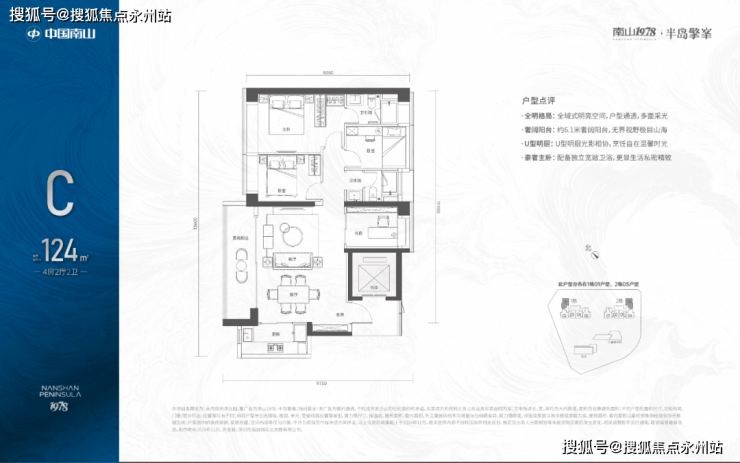 124㎡-4房2厅2卫,折后总价801-965万/套,单价6.5-7.77万/㎡。