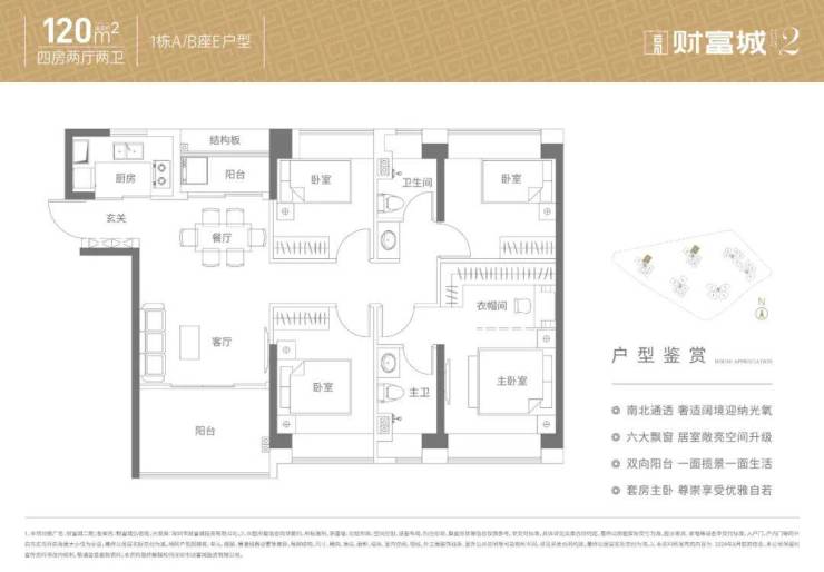 120㎡的4房2厅2卫,折后总价393-409万/套,单价3.27-3.4万/㎡。