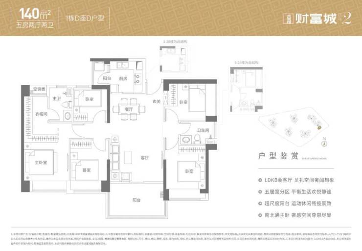 140㎡的5房2厅2卫,折后总价571-593万/套,单价4.07-4.29万/㎡。