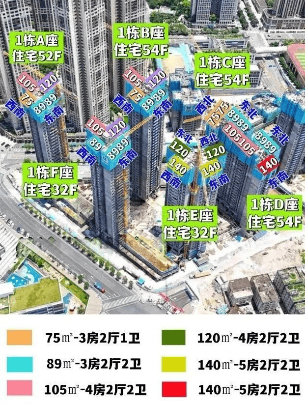 坪山中心区,财富城2期弘德苑于2024年在11月21日取证入市,本次取证整个弘德苑1栋A座-F座都有拿到预售证,共613套房源,面积有75㎡的3房1卫,89㎡的3房2卫,105-120㎡的4房2卫,140㎡的5房2卫户型,备案均价4.04万/㎡,备案单价3.47-4.95万/㎡,总价262-694万/㎡!计划在2026年6月份简装交房。