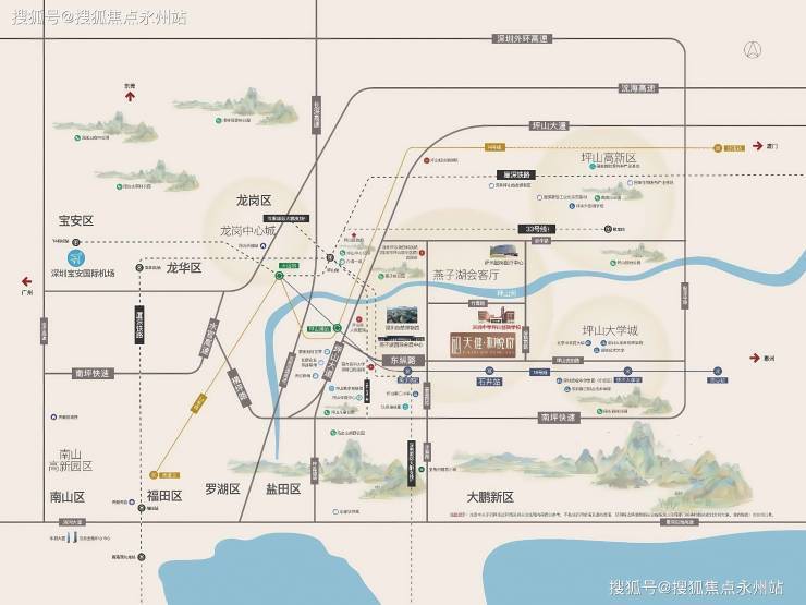 多维路网:1.5km 上南坪快速三期,30 分钟直达福田CBD,3km 接驳外环高速、沈海高速双动脉,规划深大城际聚龙站(在建)直线距离 3.5km