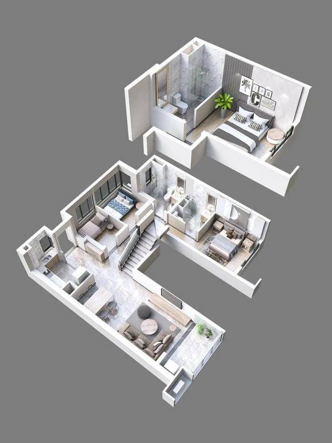 97㎡&104㎡ 四房三卫双套间,绝无仅有。
