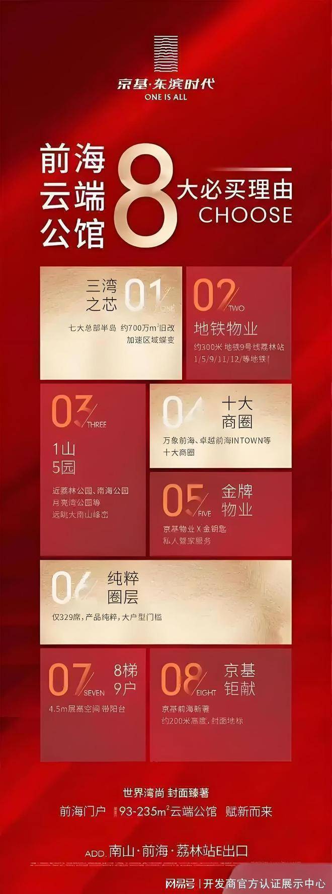 扎堆的总部企业,高密度经济体量,在“三湾七总部”的高端圈层群体吸虹效应下,仅地段价值,京基东滨时代已然秒杀一众产品。