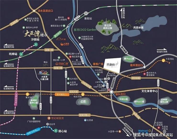 大亚湾紧邻深圳坪山,是深圳东进战略直接辐射受益区。玖御府项目南侧紧邻大亚湾主干道龙海二路,周边临近大亚湾大动脉-大亚湾大道,距离惠阳站仅12分钟,乘坐高铁1小时直达香港西九龙。距惠深沿海高速澳口收费站仅1.8公里。约30分钟可达深圳龙岗中心城,约50分钟可达深圳罗湖福田,约40分钟可达惠州机场。距深圳地铁14号线沙田站10公里,起点沙田站到终点福田岗厦北全长只需要50分钟。畅享三城生活,实现深港惠捷运化便捷生活。