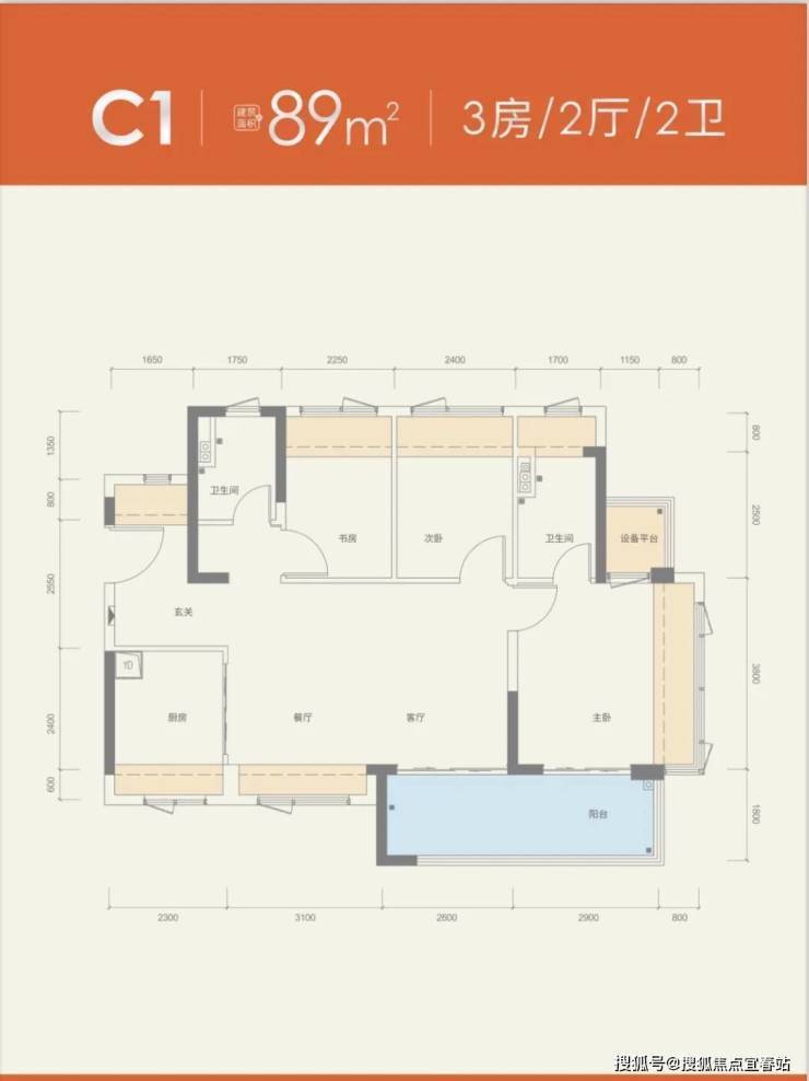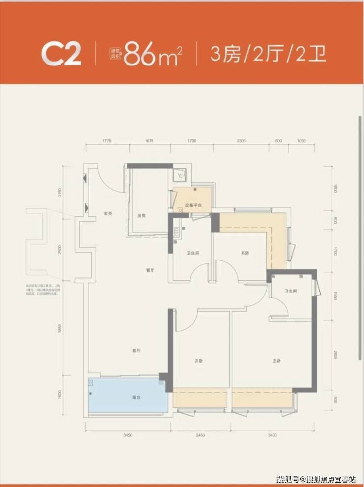 建面约86㎡3房2卫