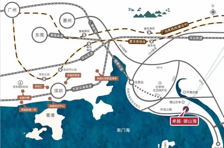 • 4条高速:沿海高速、深汕高速、潮莞高速、广惠高速。
