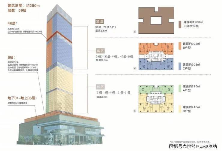 户型分布在高区33-47层,4个户型朝向,也可以两套打通做620㎡大户型,东南跟西南主要看海景,西北跟东北斗可以看部分海景+大小南山景观