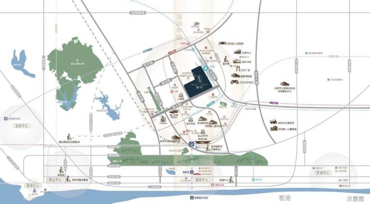 项目依托深圳北站与宝安国际机场,实现深港、深广半小时生活圈,共融大湾区1小时生活圈,通达全国,链接全球。〈5〉