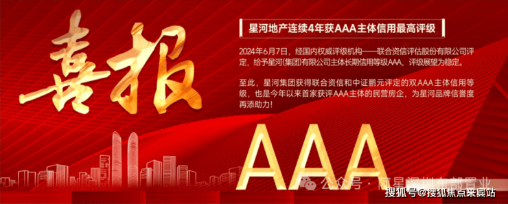 星河控股集团,连续4年荣获AAA主体信用评级,连续十一年获得“中国房地产百强企业”称号。
