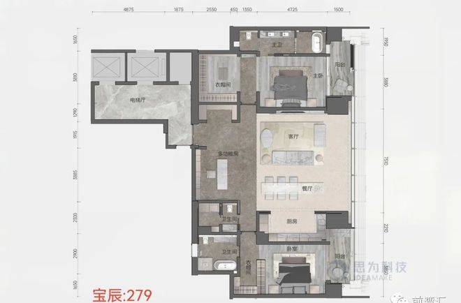 天幕藏品,总建面约8.6万㎡,主打建面约125-280㎡天幕藏品,分布在楼层的中区、高区、超高区,分别命名为风邸(6-24F)、兴邸(27-37F)和颂邸(40-52F)。