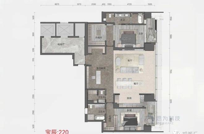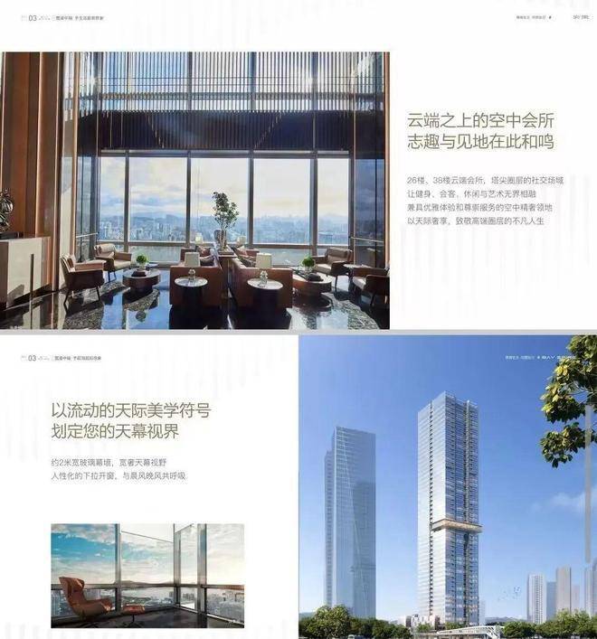 双云端会所,分别位于26层及38层,将作为生活与艺术无界相融的社交领域,给予业主在“云端”享有会客、健身、休闲与艺术等多功能体验。