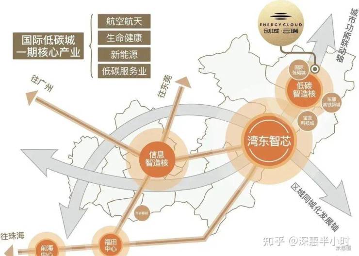 据照规划,深圳国际低碳城以高新尖科技为主,着力打造航空航天、新能源、生命健康等高能效低消耗尖端产业链。新兴产业集群比肩前海、南山。