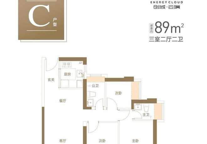 格局设计:阔绰竖厅格局,客餐厅开间约3.9米,空间感比89㎡更舒展;双阳台+双卫配置,兼顾实用与舒适;主卧为套房设计,带独立卫浴与飘窗,尊享感更强。