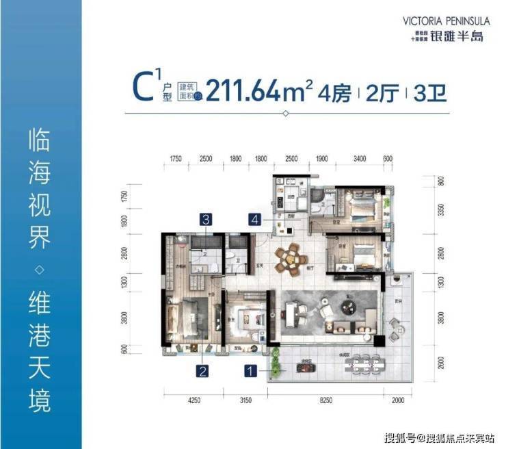 维港半岛空中“别墅” 总裁级产品,全球发售,不得不推荐建面约211.64㎡瞰海空中美宅。