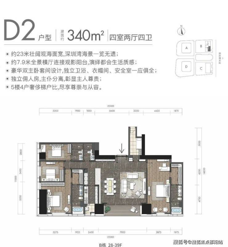 高区340㎡户型拥有东面23米宽无敌海景视野