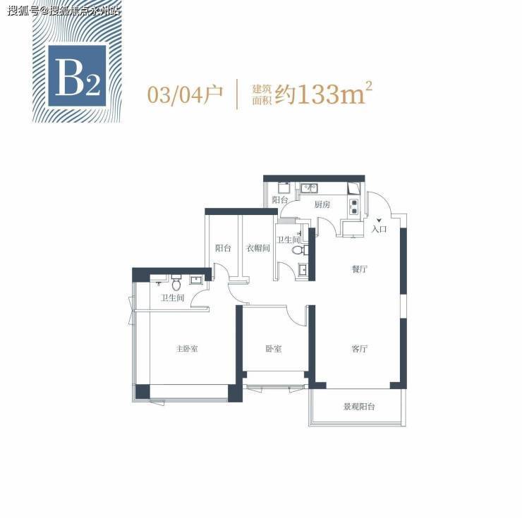 1栋二单元B2户型:面积约为133㎡
