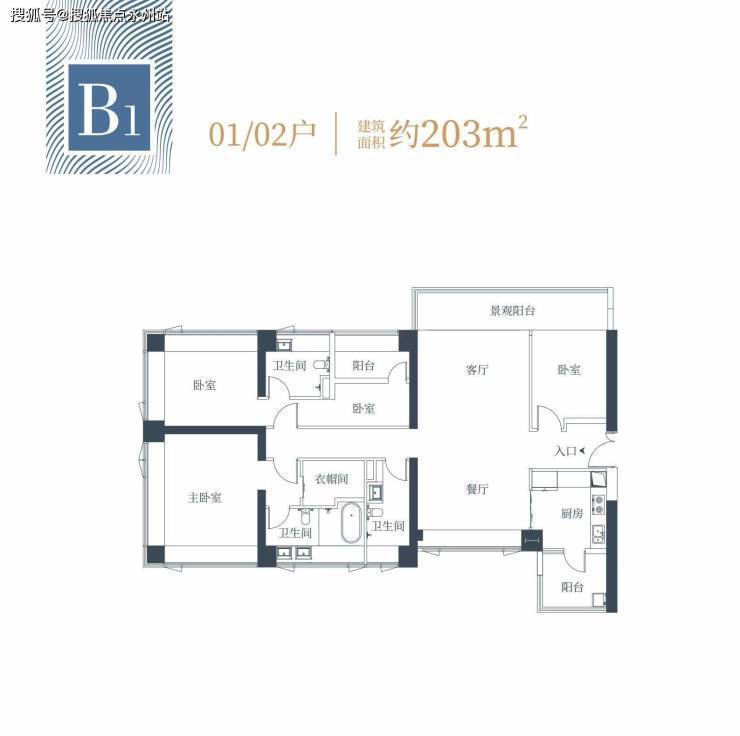 1栋二单元B1户型:面积约为203㎡