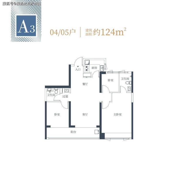 1栋一单元A3户型:面积约为124㎡