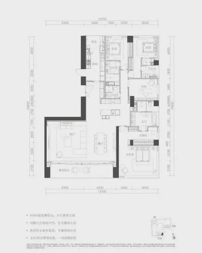 面积:户型多样,包括230-280㎡3房3卫、300-380㎡4+1房5卫、576㎡4+1房6卫、600-700㎡6-7房7卫等