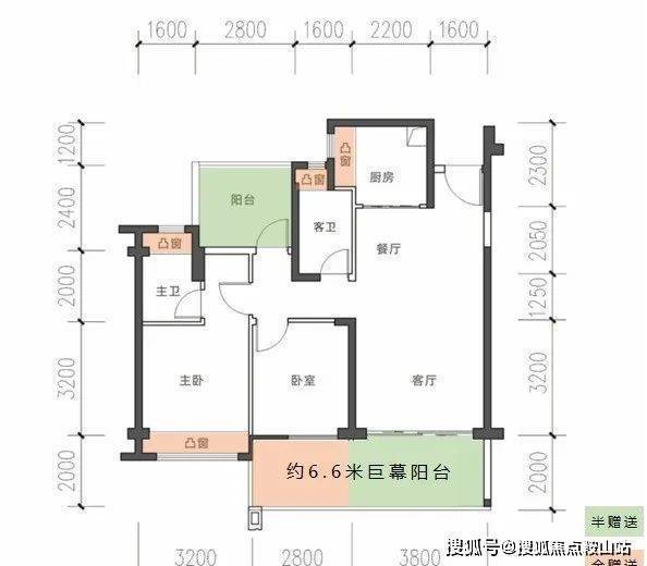 93㎡两房两厅两卫:拥有6.6米面宽大阳台,区域稀缺,全明南向布局,双卫舒居