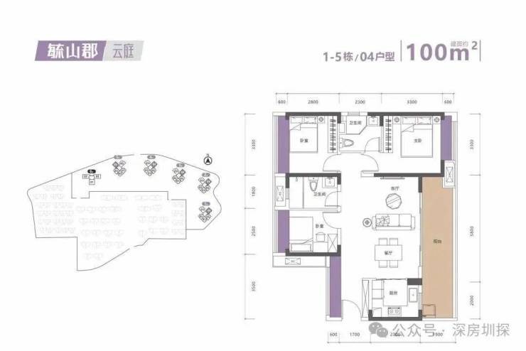 100平三房两卫