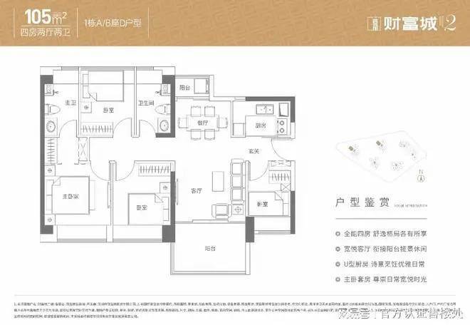 105㎡ 4 房 2 厅 2 卫(南北通透)