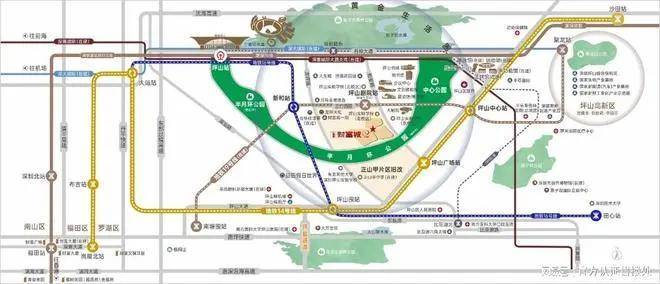 财富城二期位于深圳市坪山区坪山中心区核心地段,作为深圳东部中心的核心承载区,坪山中心区被定位为"深圳都市圈东部CBD",规划建设深圳自然博物馆、坪山体育聚落等市级文化地标,并依托坪山站枢纽打造 "轨道 + 高铁 + 城际" 综合交通体系。