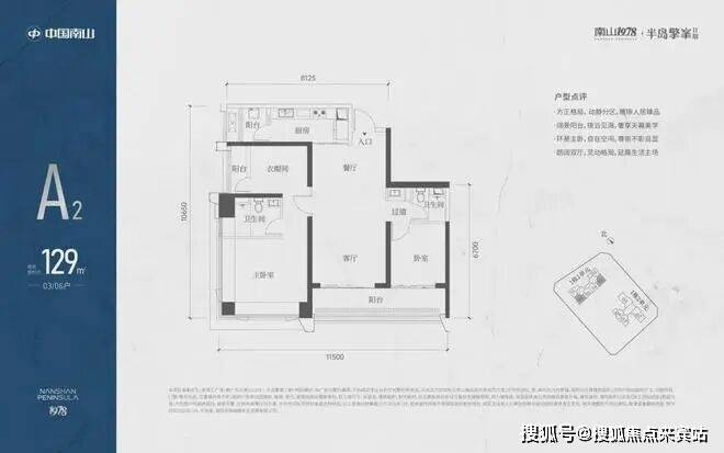 A3也是两条腿,分别是1-1栋04/05,主朝向是东南向,双龙抱珠格局。客厅拥有超大观景阳台,缺点是公卫是个暗卫,小次卧和主卫也对天井外走廊,采光不足。