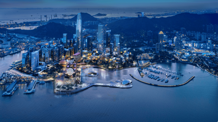 未来,约380米高的灯塔地标-太子湾大厦(在建)与约250米高的瑞玺相互映照,携手高约211米的招商局广场,形成太子湾邮轮母港靓丽的天际风景线,丝毫不逊色于香港。