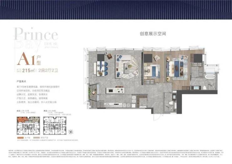 大尺度空间 纵享环幕视野大平面大尺度定位,层高约3.6米,横厅设计确保最大化观景面全户型纵享环幕视野。项目打造主力建面约215-415㎡纯粹品质公寓共191席,顶层为建面约1270㎡公寓产品。