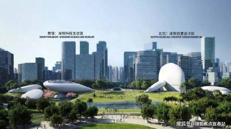 规划包含A区深圳创意设计馆和深圳科技生活馆,B、C区城市山谷文化商业区