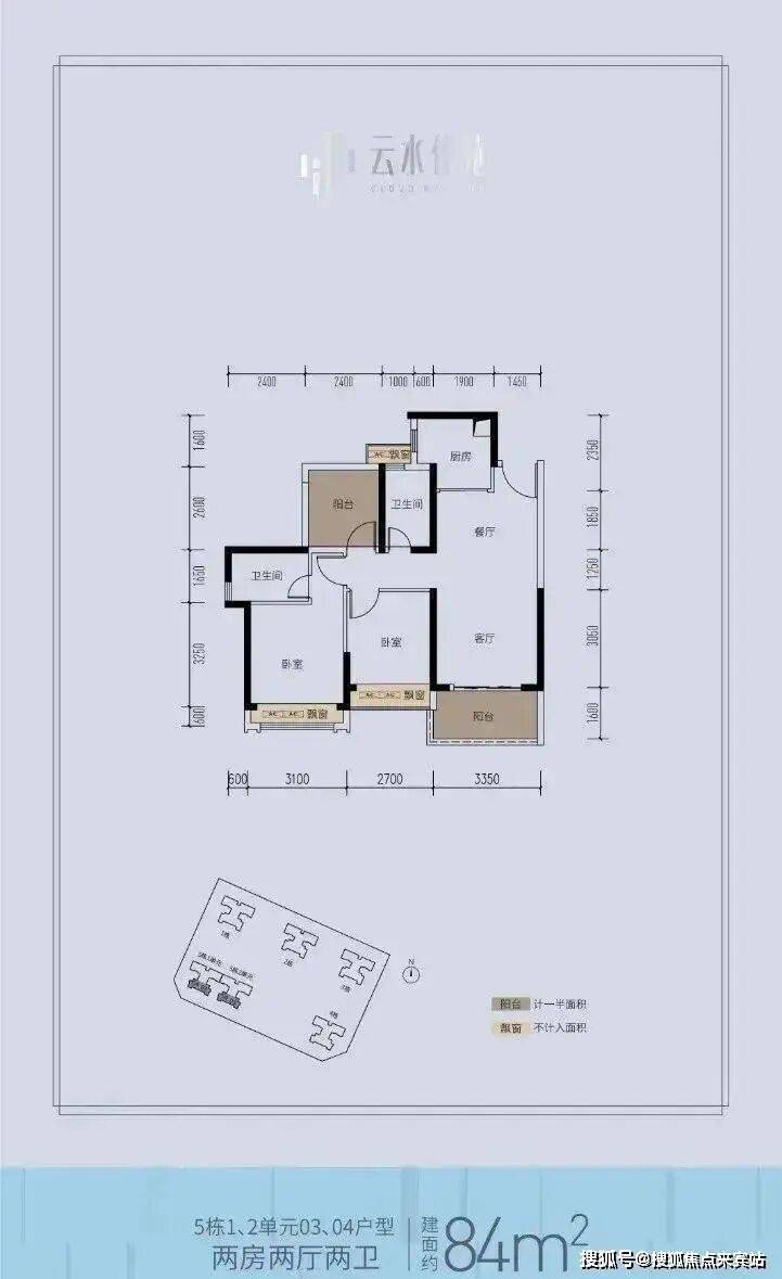 户型方面,云水佳苑的户型格局较好,赠送及使用率在同片区内是比较优的,以小户型为例5# 84㎡户型可做到2+1三房两厅两卫格局,片区内在售项目暂无这种高赠送户型,