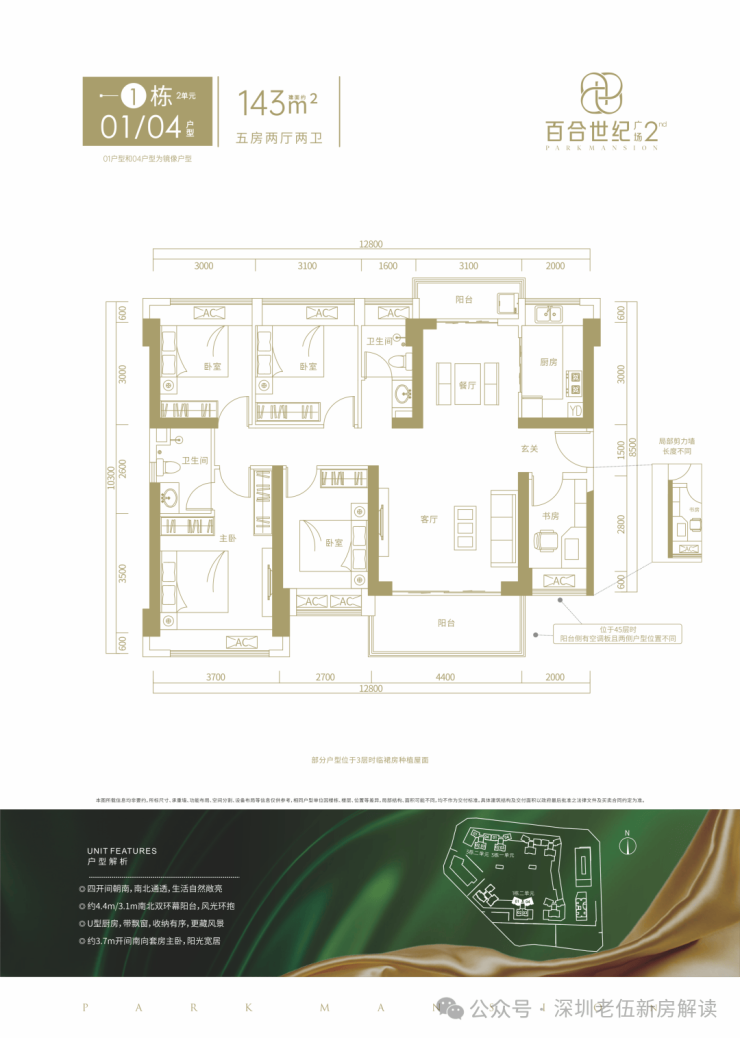 【产品面积】主力产品 建面约 98-143 ㎡ 3-5房(一期 174 ㎡阔绰 5 房热售中)