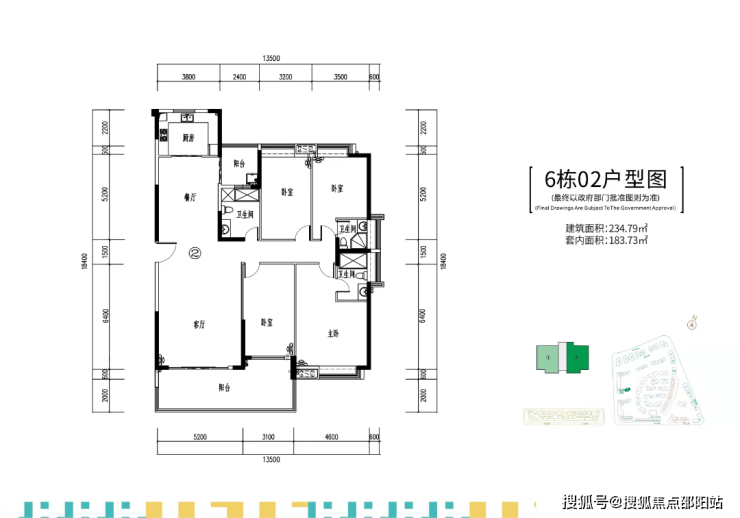 在售的6栋,两梯两户,建面约219-235㎡四房大平层户型。