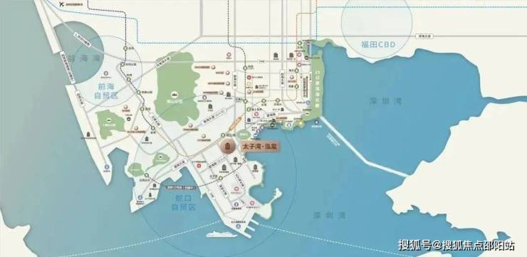 太子湾片区规划总建筑面积约170万㎡,总占地约69万㎡,汇集办公、居住、商业、艺术中心、酒店等多元业态。以“一湾三坊城中城”概念打造布局,在独一无二的太子湾滨海区,汲取山、海、城三大元素,构建高端“居住坊”、“商业坊”、“港务坊”。凭借独树一帜的规划与强大的枢纽功能,成就高端元素集萃纷呈的“城中之城。