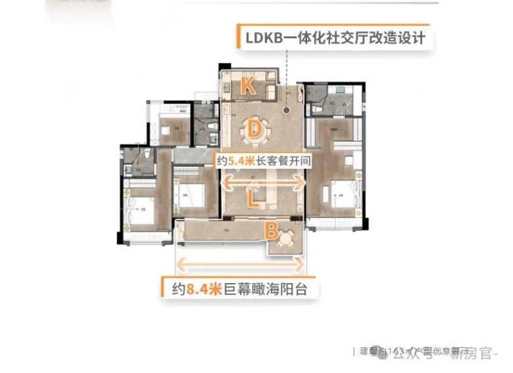 LDK一体化设计,打通玄关、客厅、餐厅、厨房,形成超大家庭欢聚厅,加上南北对流设计,让空间充满生命力。