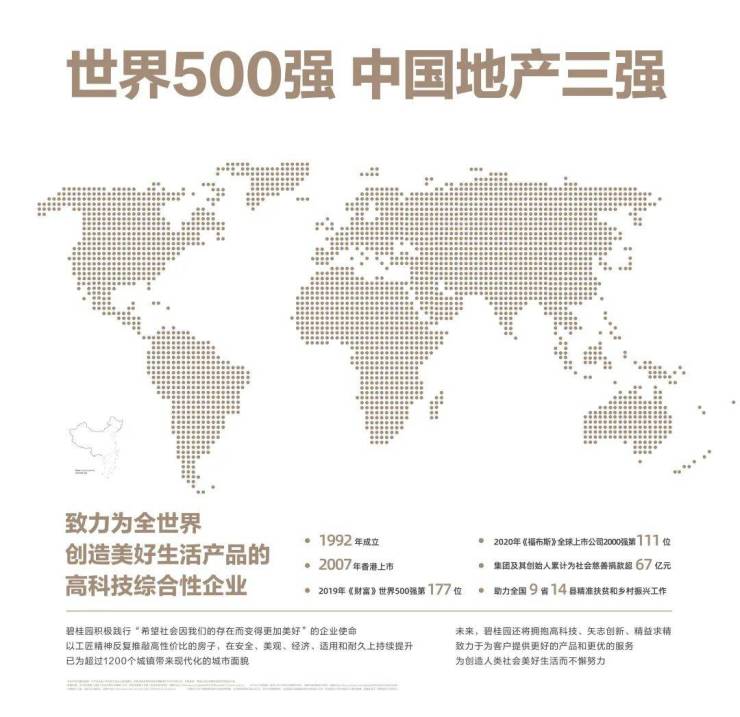 【品牌实力】碧桂园:世界500强,中国地产三强,现已打造过2000个高质量项目,约160万业主选择在碧桂园安居乐业选大品牌,安家更放心