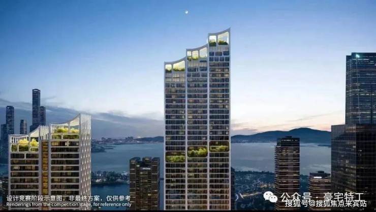 项目规划5栋超高层住宅,采用全玻璃幕墙设计,实用率超95%,主力户型为209㎡以上大平层。项目以“第四代住宅”标准打造,配备空中连廊、星空会所、架空泳池等共享空间,并融入垂直绿化体系